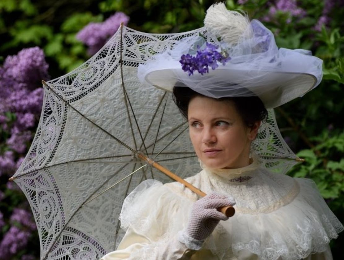Вуаль — короткая сетка, закрывавшая лицо до подбородка. Пик ее популярности пришелся на 1890–1910-е годы. Вуаль шили из тюля или иллюзиона, украшали вышивкой ришелье и аппликациями из брюссельских роз. Изделие крепили к маленькой шляпке или прямо к волосам и поднимали только для поцелуя. На проспекте Андраши дамы носили вуаль даже в трамвае — «от пыли и любопытных глаз». В 1920-х годах вуаль укоротили до бровей и надвинули на глаза: так ходили «пештские вампиры» в кинотеатрах. Цена вуали в салонах составляла 120 крон — это была половина зарплаты машинистки.